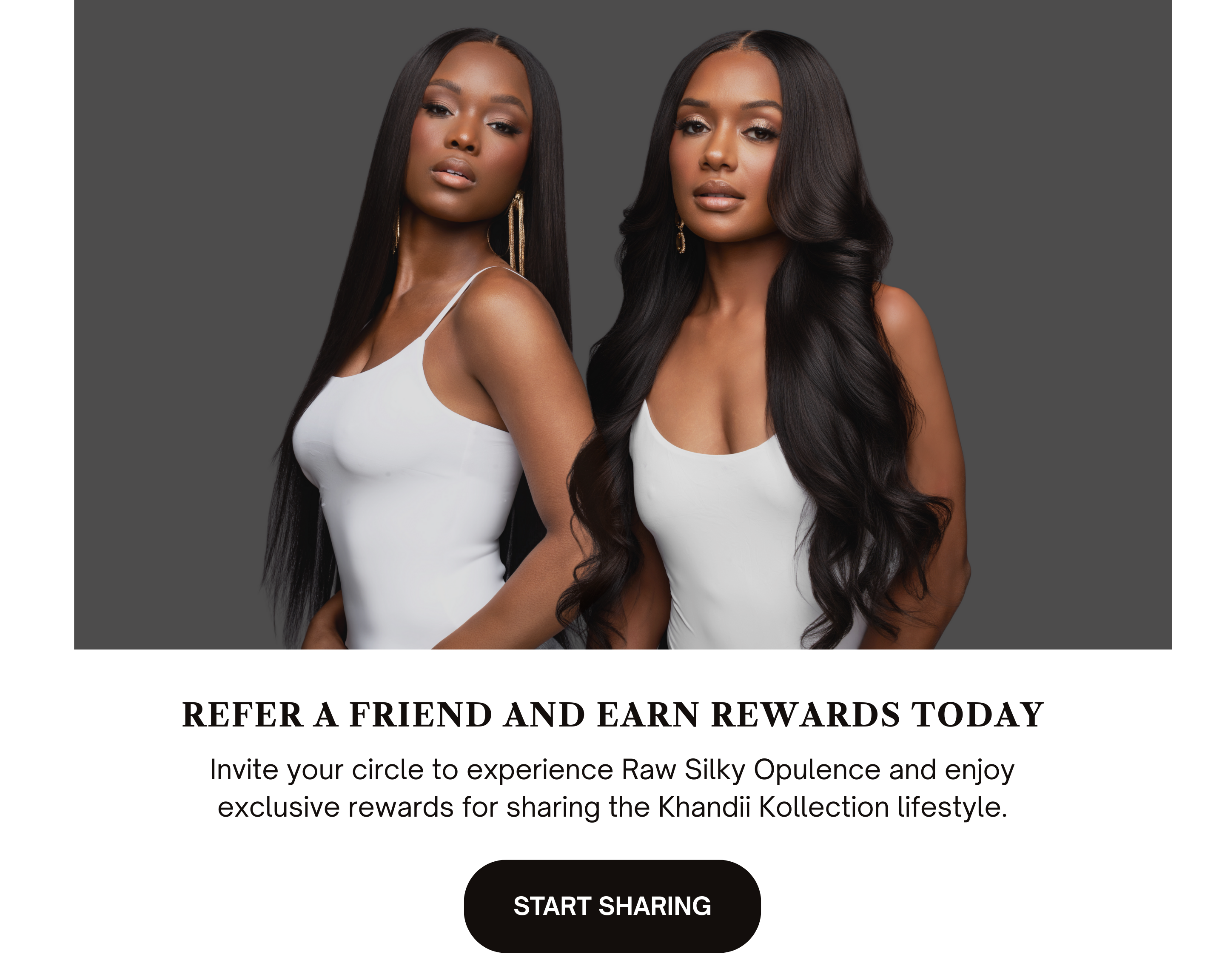 Invite your friends to experience the confidence and luxury of Khandii Kollection Hair Extensions. When you refer them, they’ll get 20% off their first purchase of $395 or more, and you’ll enjoy $25 off your next order for each successful referral. It’s our way of saying thank you for spreading the word and helping our Khandii Girls community grow. Share the beauty, share the rewards, and let’s shine together.